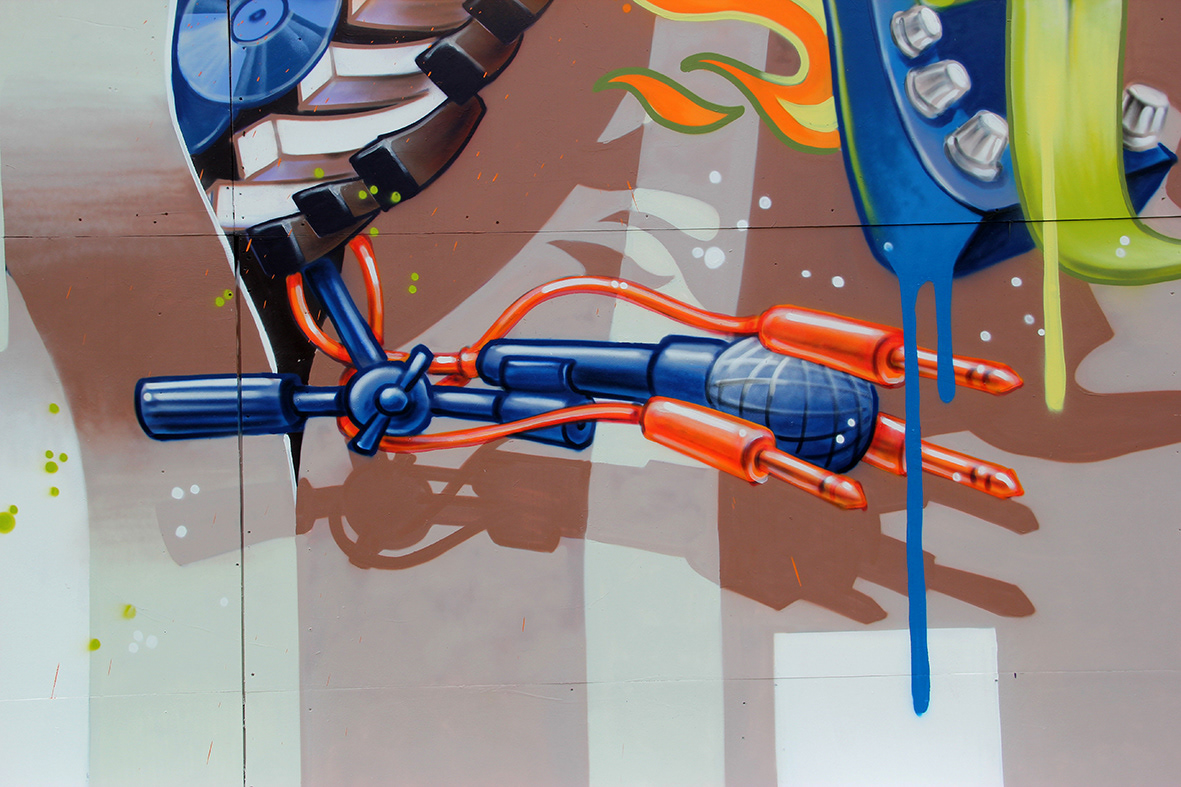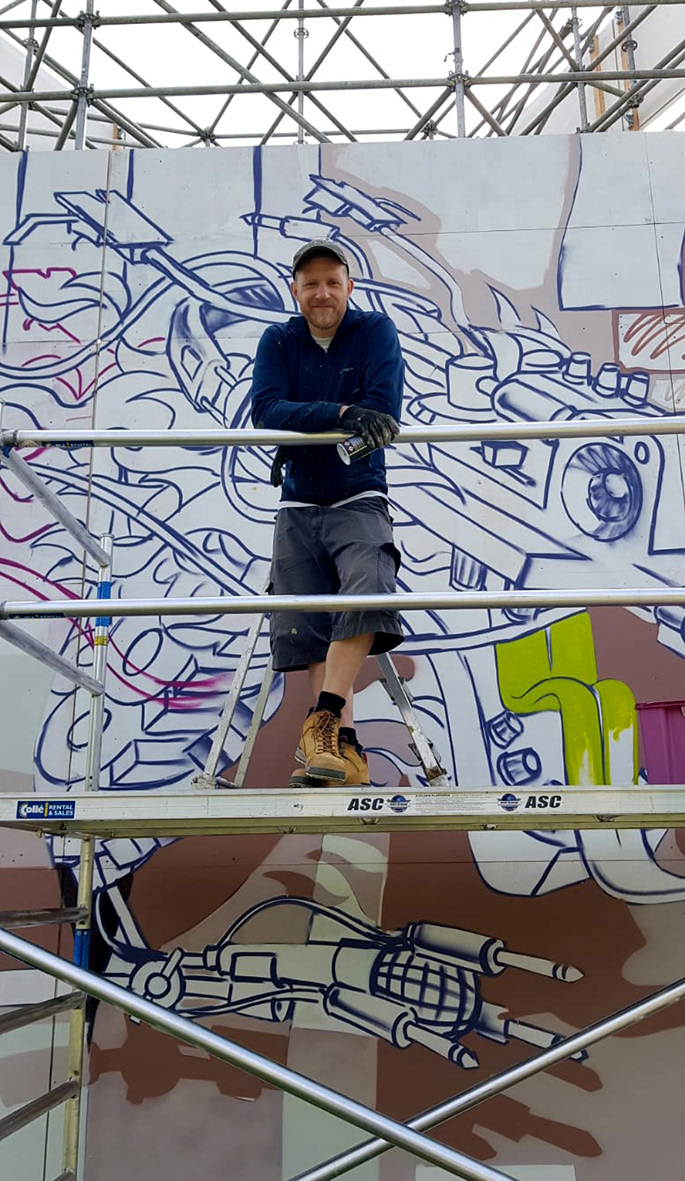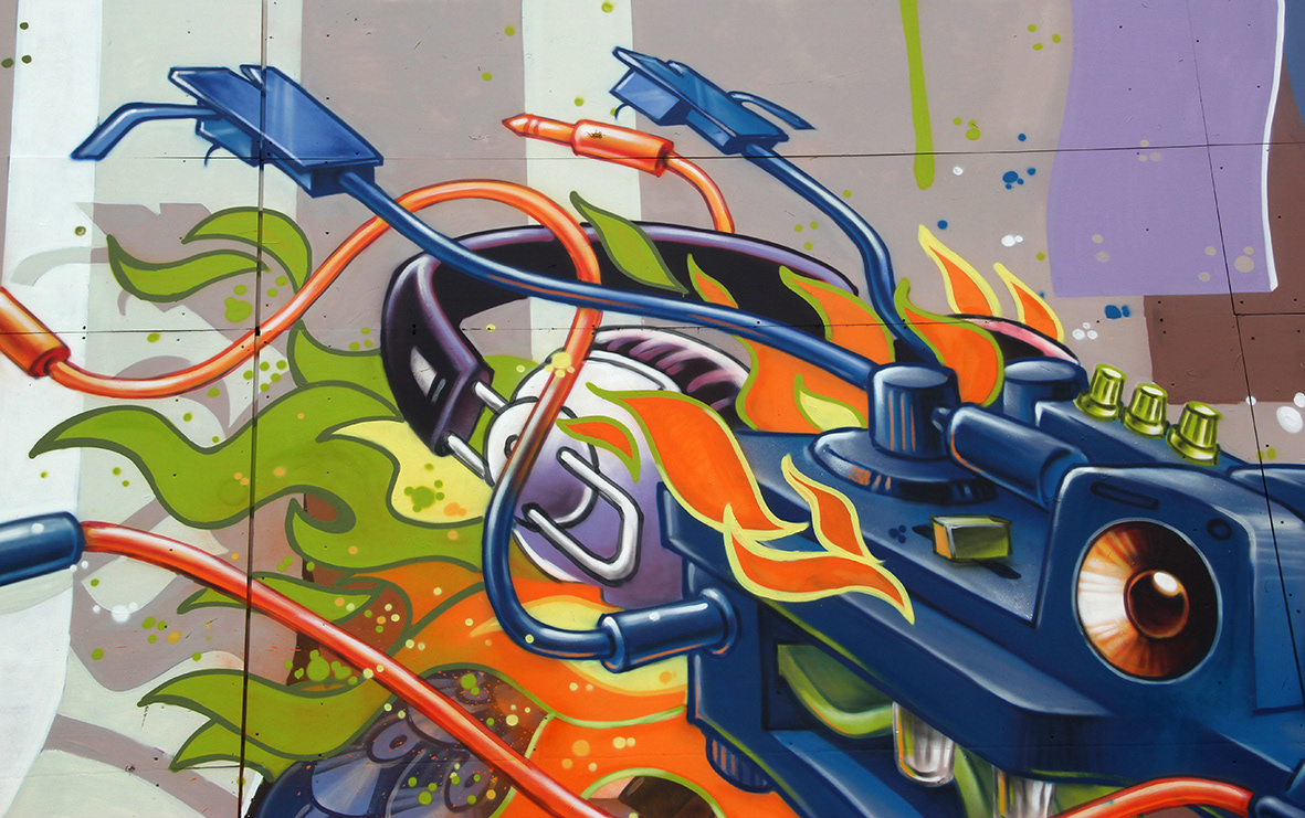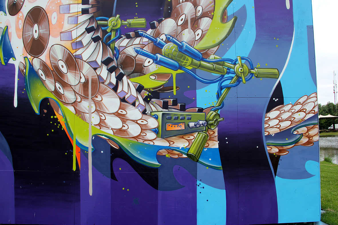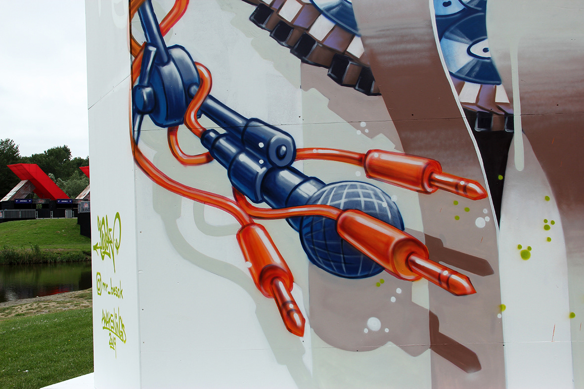 Spray painted wooden triangle tower, AWAKENINGS Festival 2019,