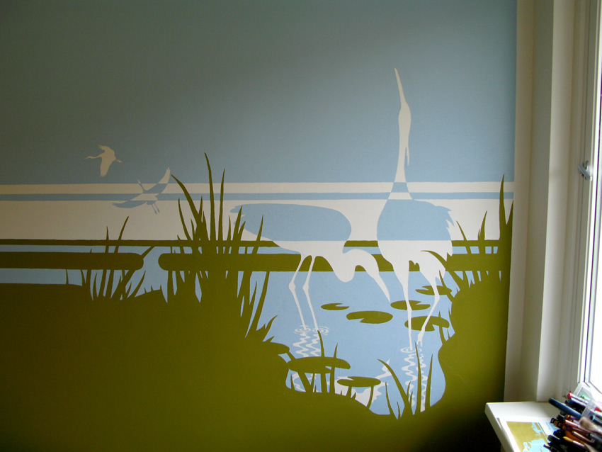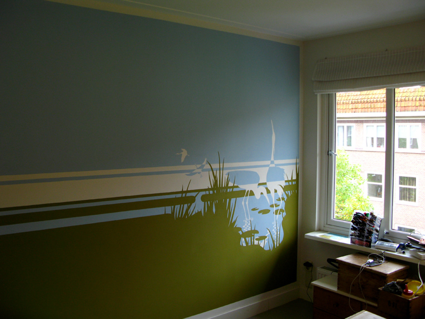 For my first sons bedroom I have painted this retro graphic inspired Wall Painting