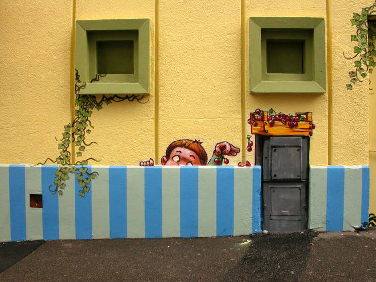 Mural Painting by Nesse & Besok at "L'estacade Market" under a railway bridge, Grenoble/France 2007