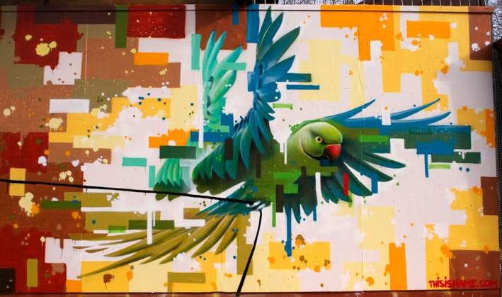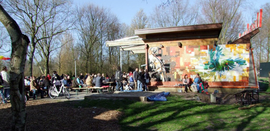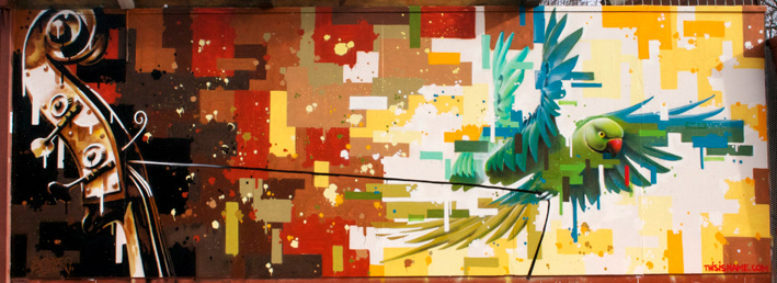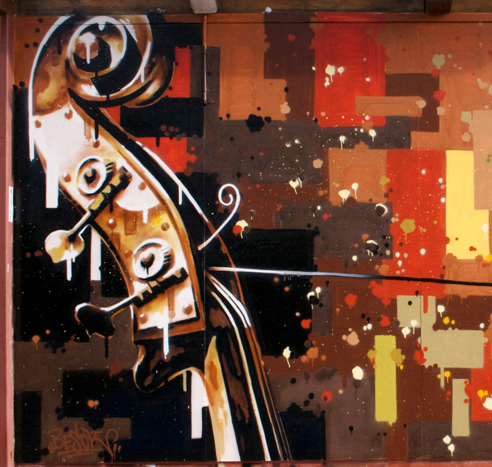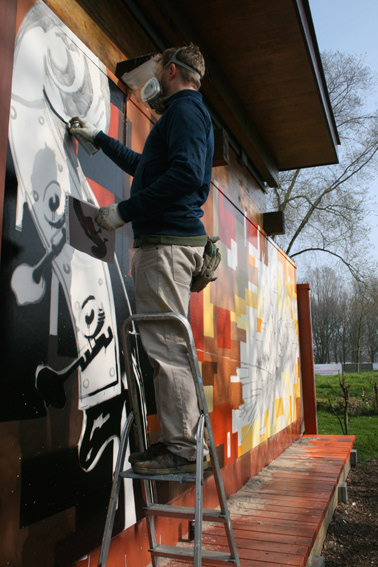 painting on outside wall of café in Amsterdam 2013